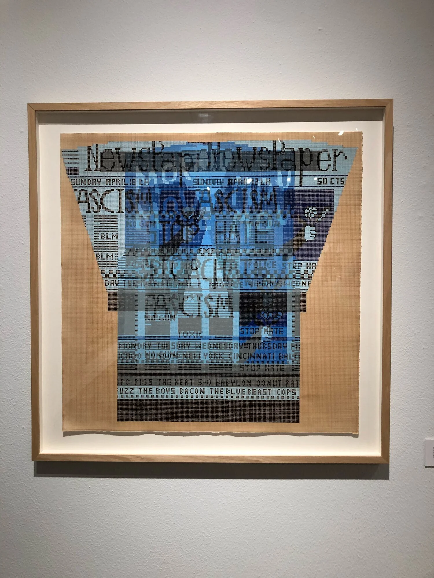 Portland artist Ellen Lesperance, who is opening her first solo museum show this month at the Baltimore Museum of Art, has two gouache on paper paintings in this show. Her work recreates historic knit garments worn by women at protests, sit-ins, demonstrations and during other acts of civil disobedience.” Rendering these radical textile patterns in paint and framing them on a wall subverts the hierarchy between high and low art or domestic and fine art. For her, and other artists grouped under the political rubric of the show, “artistic practice is a form of political engagement.”
